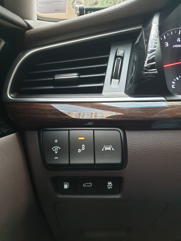-> 운전자 km 디스플레이 밝기 조절 버튼, 차선 변경 시 접근하는 차량 감지 기능 ON/OFF기능, 차선 이탈 방지 기능