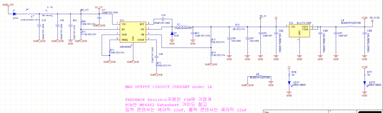 7. Feedback 받는 패턴이 MP4462DN IC의 출력 단자 바로 밑으로 배선했음. (매우 중요!)