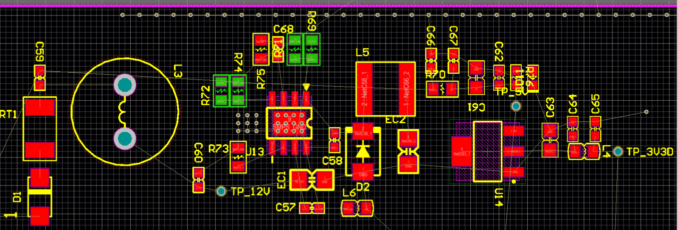 - 입력 콘덴서와 마찬가지로 출력 콘덴서 배치가 오류가 되면서 GND가 좁아졌습니다.