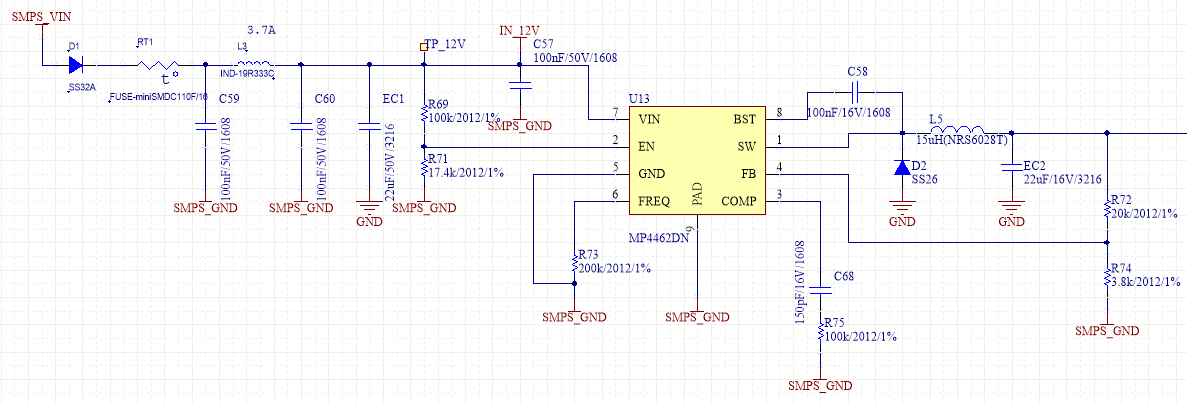 - SMPS_VIN으로 12V ~ 36V 전압이 인가됩니다.