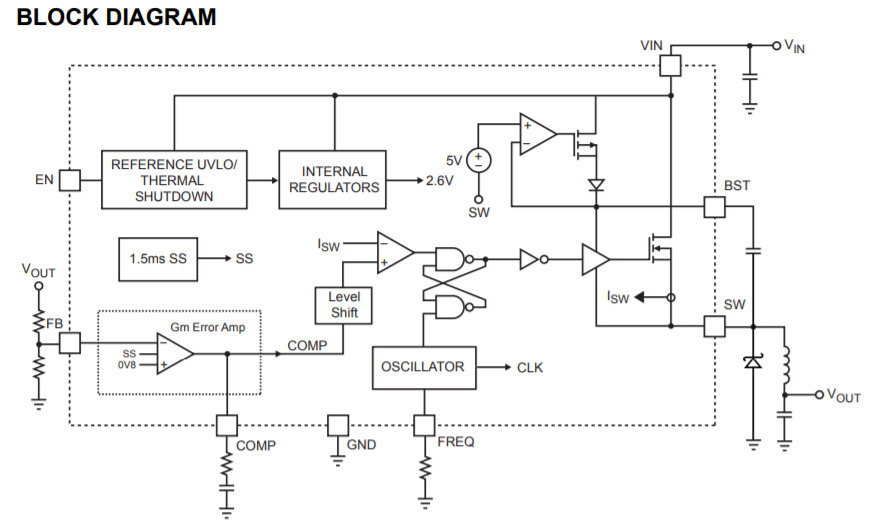 시작하기에 앞서, DCDC 컨버터 컨셉 편에서 언급했던 IC의 Block Diagram에 대해서 다시 되짚어보겠습니다.