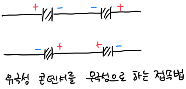 2개의 유극성 콘덴서를 아래 이미지와 같이 Back to Back으로 직렬연결하면 무극성이 된답니다 ^^